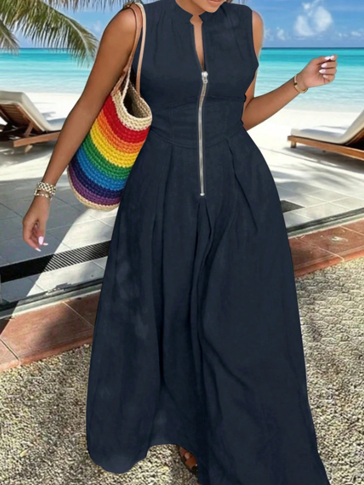INAWLY Solva Plus Size Summer Casual Zip Front Sleeveless Dress | $16.63