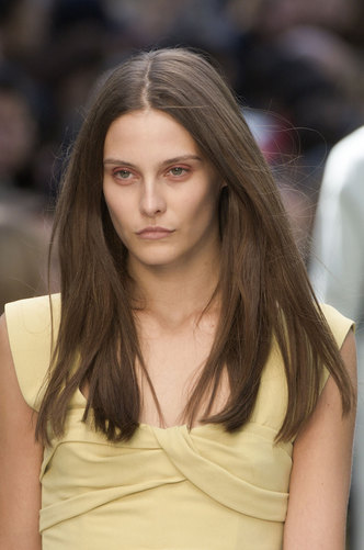 Whether you have long or mid-length hair; stand out with a harsh centre parting and do not be afraid to straighten, straighten, straighten! Much like Burberry and Chloé lead.