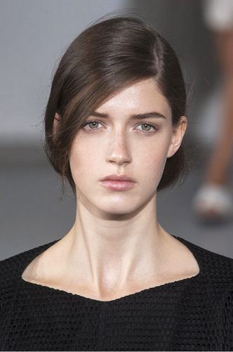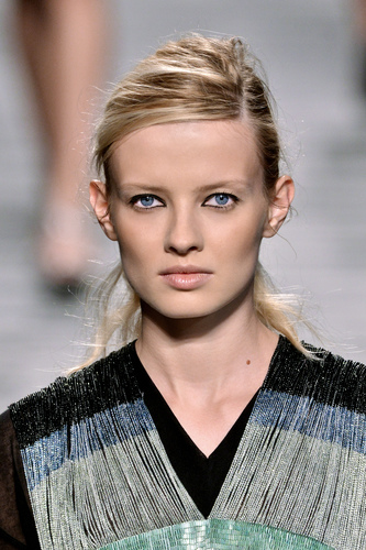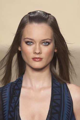 In the footsteps of Balmain, Christopher Kane and Diane Von Furstenberg; light powder and slight bronzer is all that would be considered necessary; highlight features such as eyebrows and lip tint for a sophisticated edge.
