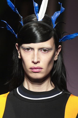 For a more playful edge; you could opt for sweeping fringe in the direction of the parting; this adds mystery to a look. Prada have also added a headband as extra detailing; not only does it hold the hair in place but it can act as a frame for the hair across the fringe.