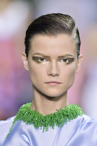 Dior’s main focus was bright and bold and extravagant eye shadow. Golden blend and shaped out further than the eyelid creates shape and structure; this makes more of an outline as eyeliner nor mascara is needed.