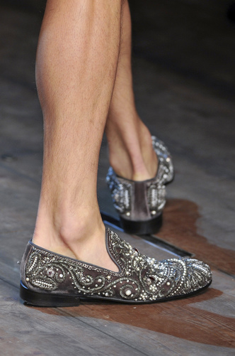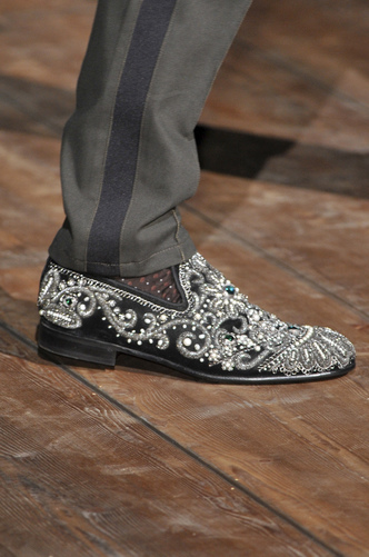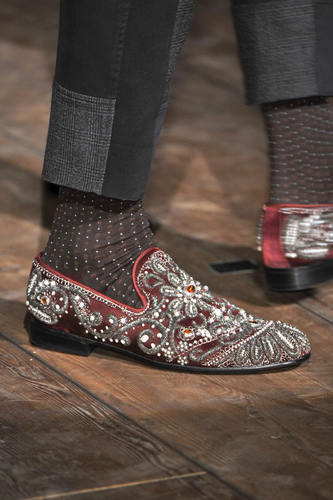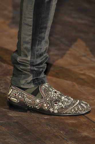 The delicate embroidery is a statement all in itself; let alone as a slipper; teamed with a satin or tweed suit, will display the most impressive of gentlemen. If you want the most exquisite of detailing, beading and embroidery; look no further than Dolce & Gabbana.