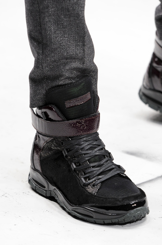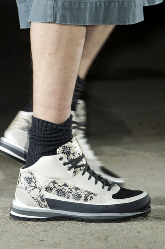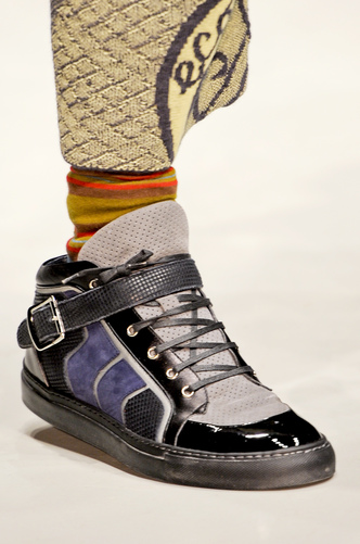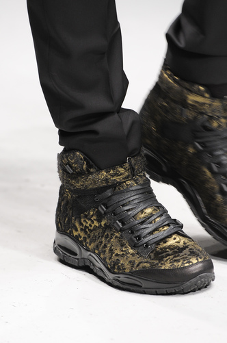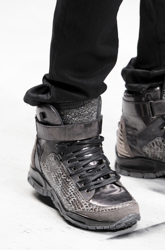 Typically Hi-Tops; structured with a buckle secured around the ankle; Roberto Cavalli has stuck in his comfort zone of the animal print; snake skin and leopard print.