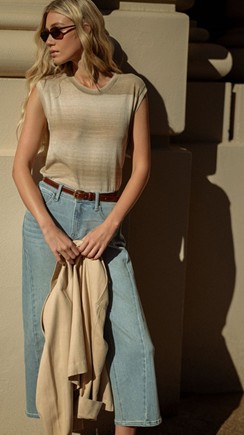 Searching for denim that does it all? Look no further than flare-leg jeans. From cropped lengths to elongated silhouettes, this city-chic denim is an ideal transitional piece for versatile moments. Fitted through the hips and thighs and flaring out at the knees, you can dress this option up or down depending on your day.