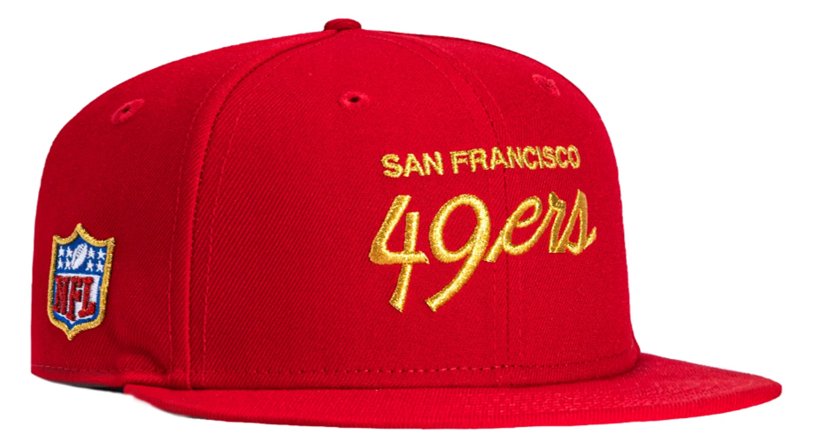 Going beyond the specific “style” of fitted hats, it bears repeating how many colorways, logos, and cool details, like side patches, are out there. You can find many “standard” colorways and logos, like red San Francisco 49ers hats with the team’s logo accented in gold.