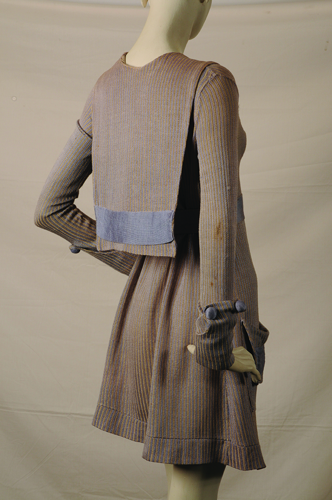 The exhibition stresses how the knitwear designs of the 1960s became significantly more futuristic, presenting the crocheted mini-dress and mini-skirt suits that were so admired amongst the young women of the decade.
