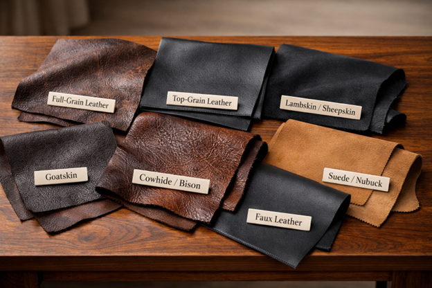 Cowhide and bison leather are thick and sturdy. They handle rough use and changing weather well. These leathers suit structured jackets and outdoor-ready designs.