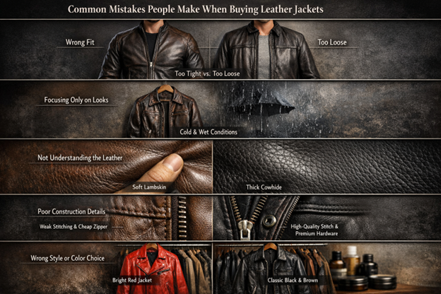 Buying a leather jacket is more than picking a design you like. Many people make avoidable mistakes that affect fit, comfort, and longevity.